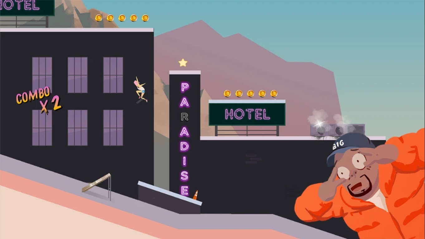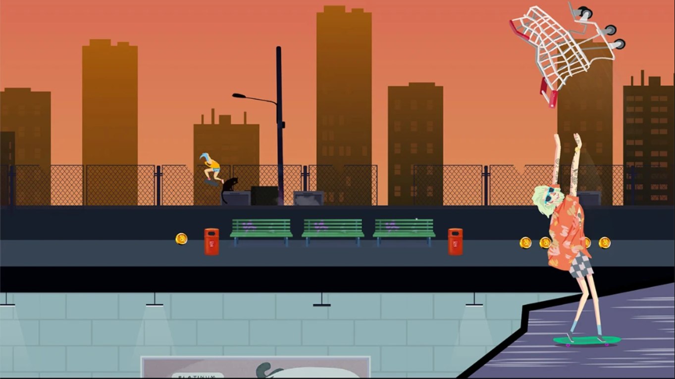 玩家可解锁多个具有不同属性的角色和滑板,部分版本支持自定义滑板颜色、帽子等外观元素,增强个性化体验。通过完成任务获取资源,用于升级装备或购买特殊道具,如“巨型泡菜滑板”等趣味设计。